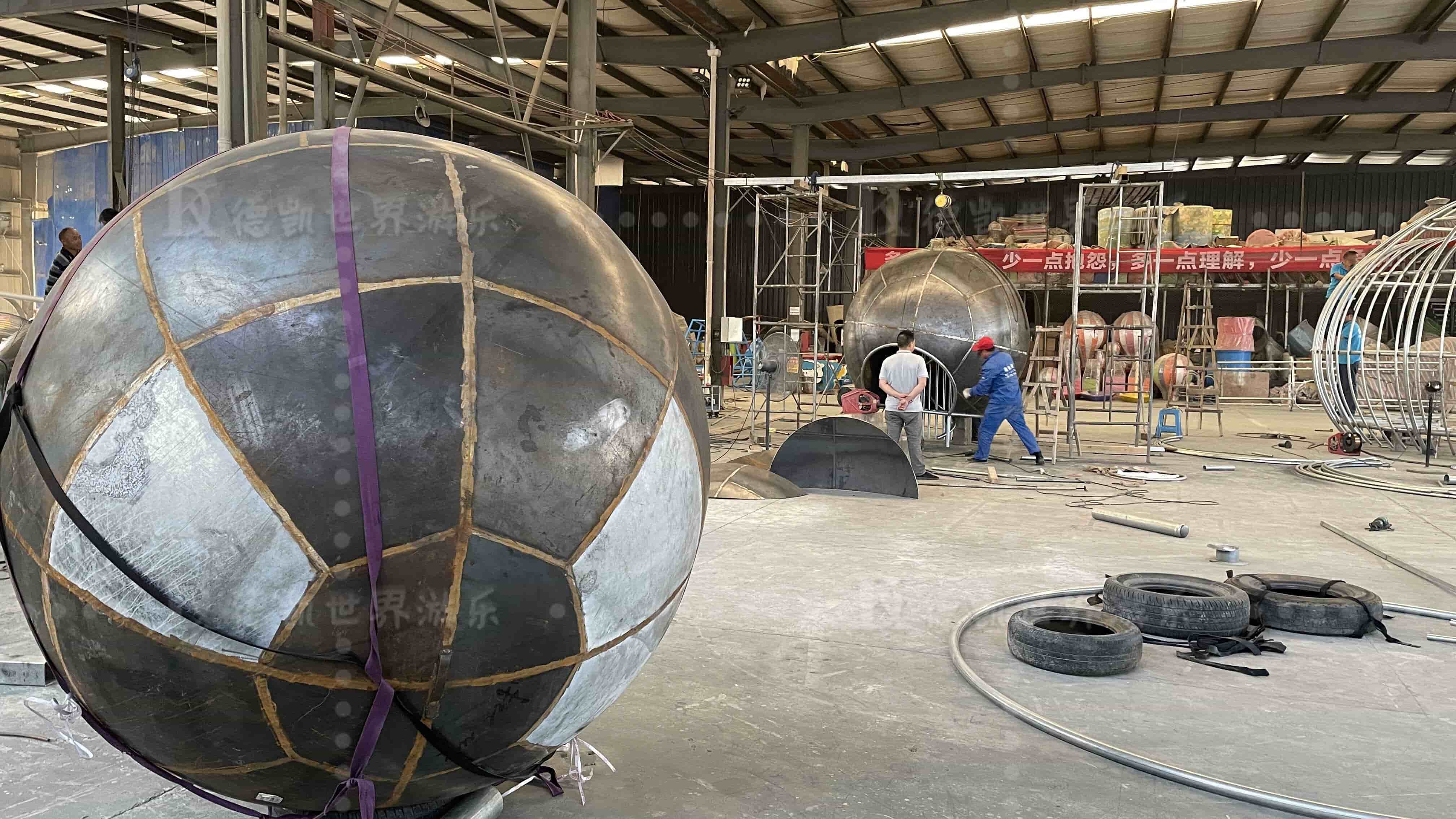 【快訊】以圓形球體為主題的樂(lè)園項(xiàng)目以開(kāi)建,目前車間部分設(shè)施生產(chǎn)已趨于成形,趣味益智的樂(lè)園指日可待。