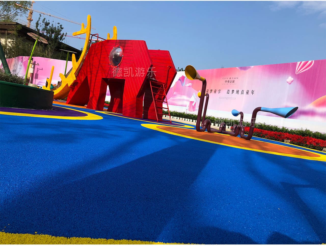 鉆進(jìn)一只巨鹿的肚子里,又從它的犄角之間滑落,在云朵與彩虹間奔跑,從樹林與花海中旋轉(zhuǎn)滑行……我們希望這樣的場(chǎng)景會(huì)進(jìn)入孩子的夢(mèng)境,成為值得被提及分享的共同回憶。