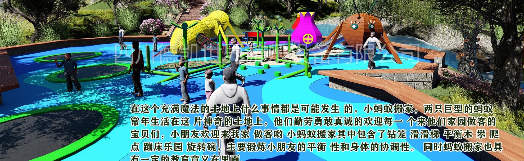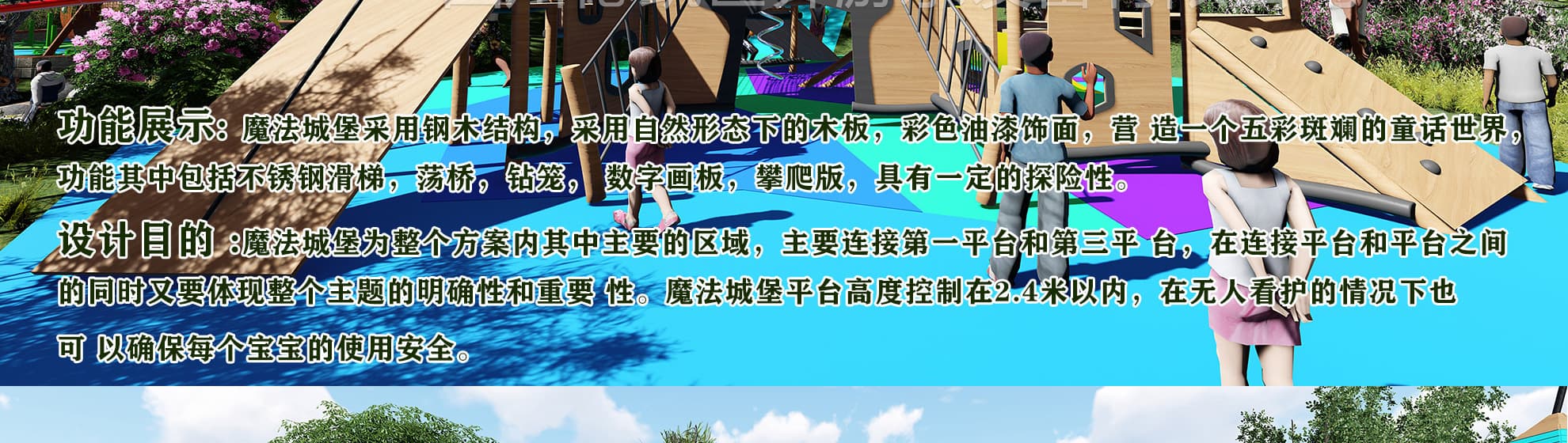 我們是一家主要為文旅地產(chǎn),旅游景區(qū),特色小鎮(zhèn),田園綜合體,生態(tài)農(nóng)莊,,市政公園,研學(xué)旅行基地,商業(yè)住宅,水上世界,兒童探索館等提供IP設(shè)計、創(chuàng)意規(guī)劃、場地設(shè)計、產(chǎn)品定制、研發(fā)生產(chǎn),銷售安裝、運營策劃、售后服務(wù)為一體的無動力兒童游樂設(shè)施生產(chǎn)廠家。